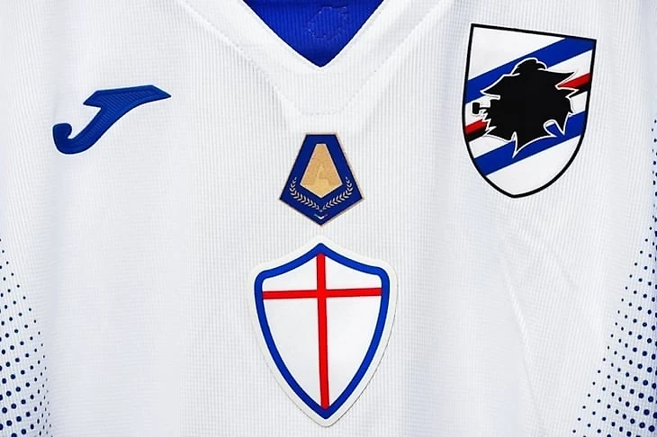Нашивка выполнена в форме нового логотипа Серии А и украшена рисунком золотого лаврового венка. Внизу – маленький символ в цветах флага Италии.