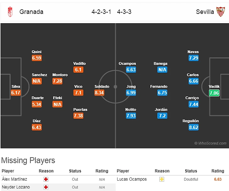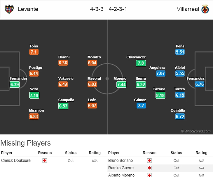 А сейчас под вопросом находятся позиции крайних защитников Вильярреала: Пенья(5,5) даже не вошел в заявку, а Морено(6) только восстановился от травмы. Может статься так, что Хосе Кальехе придется использовать дублеров, что конечно не добавит обороне гостей прочности.