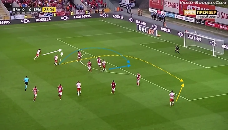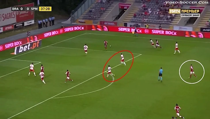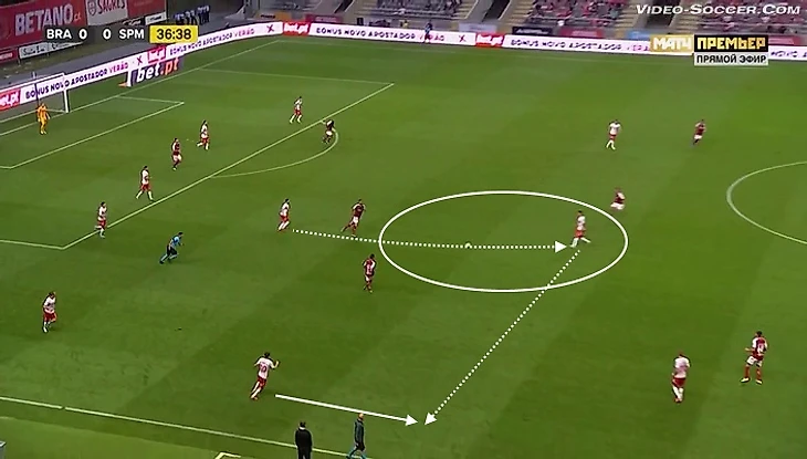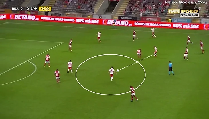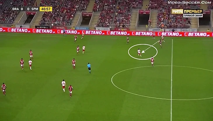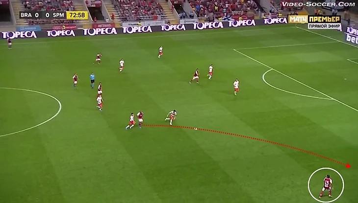 В целом же, давление «Браги» не было доминирующим. Португальцы оставляли свободные зоны, через которые красно-белые достаточно быстро и эффективно выходили из-под прессинга. Это происходило как у своих ворот, так и у чужих.