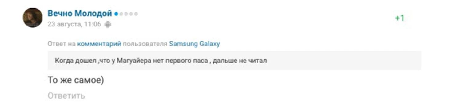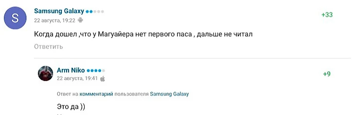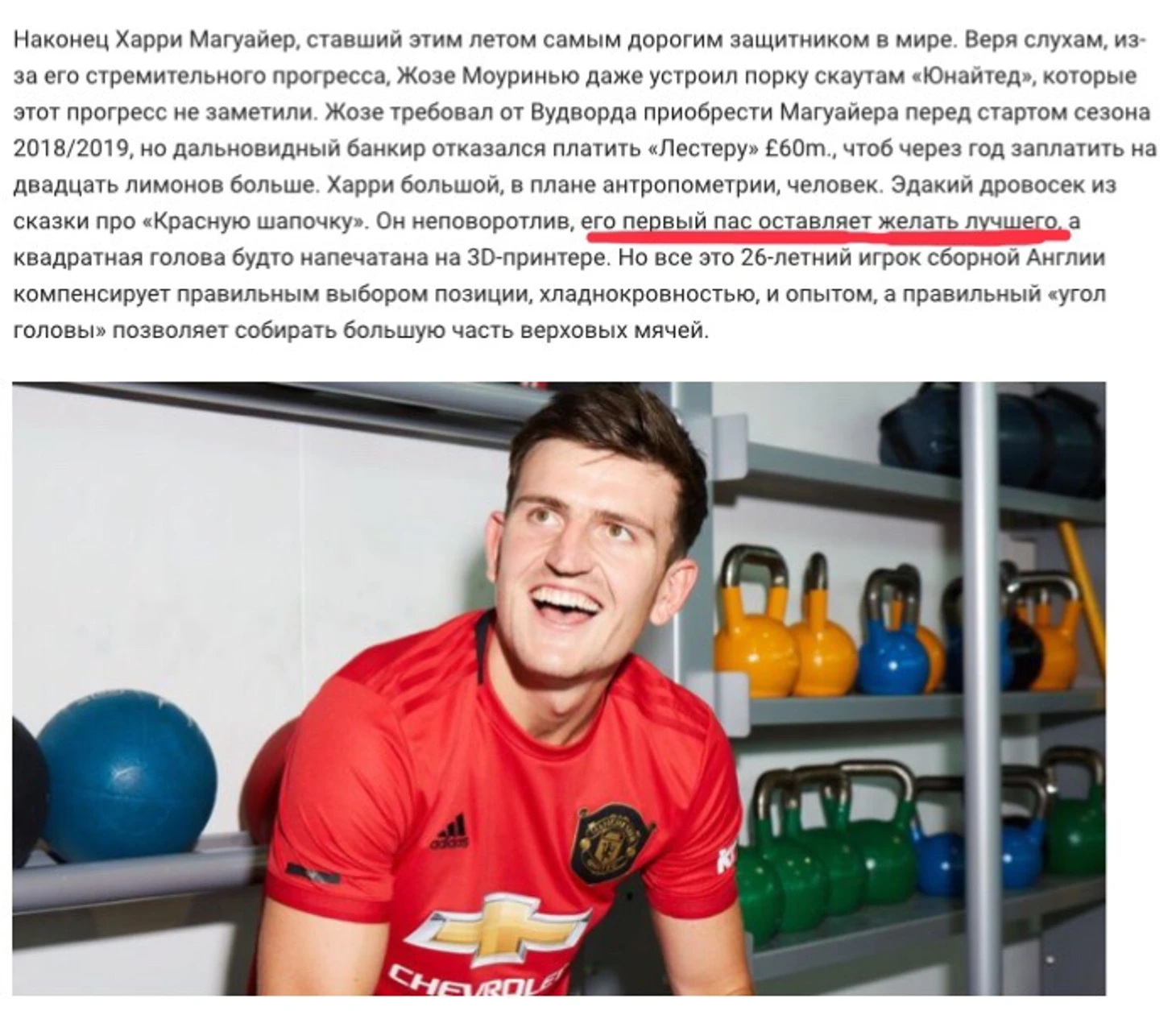 — Стоило мне предьявить некоторые претензии к первому пасу Харри Магуайера, так мне тут же возразили. Я не утверждал, что Харри не владеет передачей, но конкретно в этом компоненте ему нужно прибавлять. Один эпизод, разумеется, ничего не доказывает. Жаль что он не один.