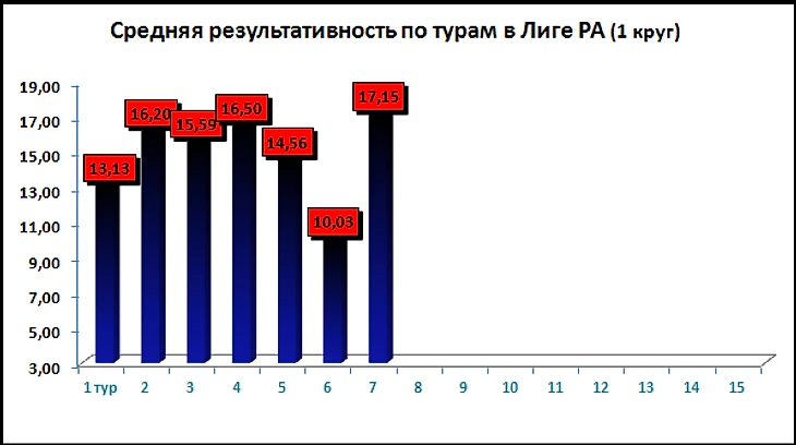 Средняя результативность 7 тура в Лиге РА - 17,15 очка на игрока