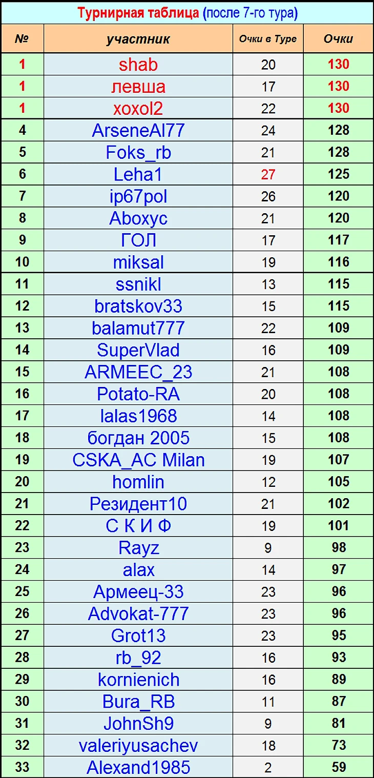 МВП 7-го Тура - Алексей Leha1 - 27 очков!