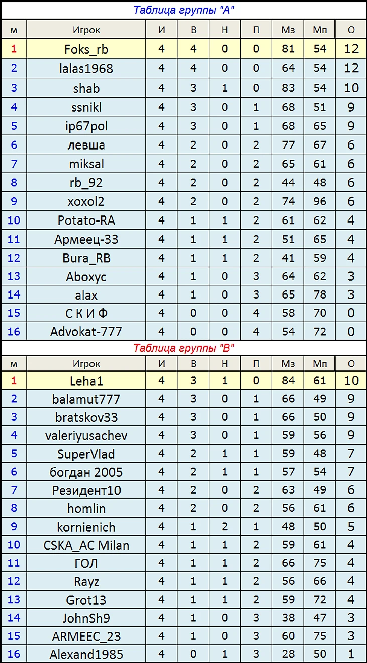 ЛИДЕРы Чемпионата КП - shab, левша, xoxol2 - по 130 очков!