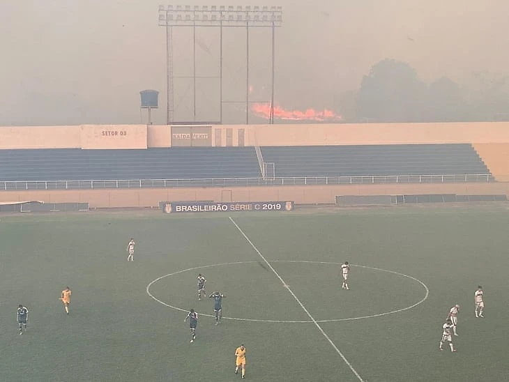 В Бразилии матч третьего дивизиона между «Атлетико Акреано» и «Луверденсе» в городе Риу-Бранку был приостановлен из-за сильного дыма, который покрыл все поле.