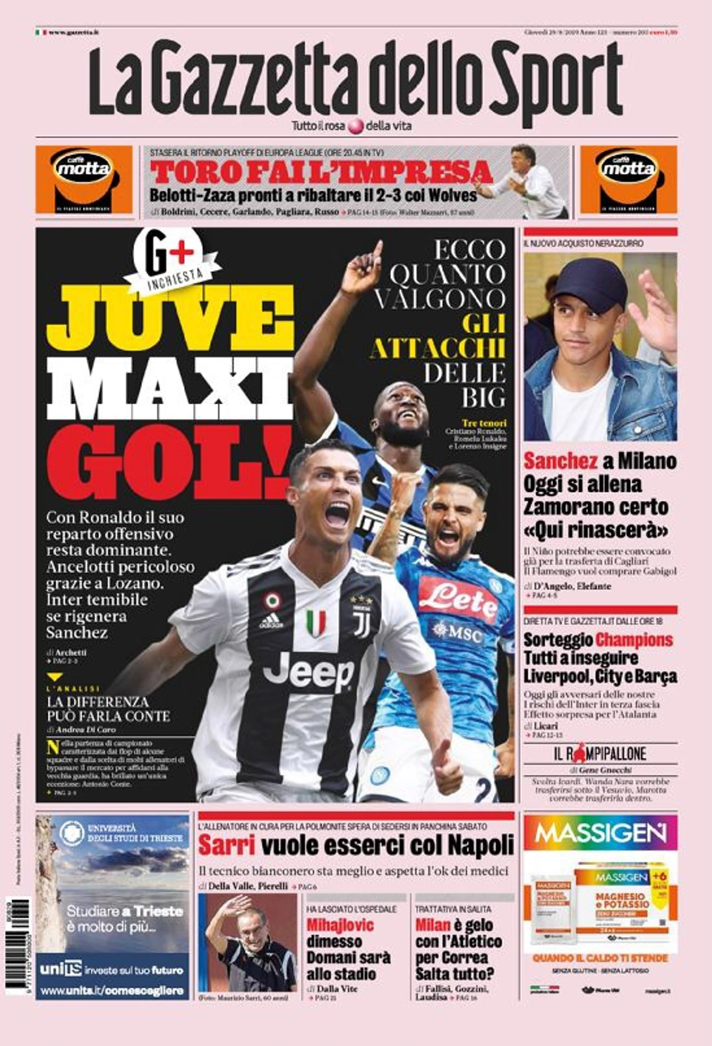 «Юве», максимум голов! Заголовки Gazzetta, TuttoSport и Corriere за 29 августа
