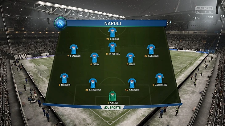 Ладно, об этом чуть позже, а сейчас состав Наполи. В целом, не думаю, что будут изменения, в сравнении с матчем с Фиорентиной. Хотя, с расстановкой, тут, конечно, ИИ Легенда чуть намудрил. Понятно, что Мертенс будет в центре атаки, Инсинье слева, Кальехон справа. Зелинский, Фабиан Руиз, Алан - в центре.