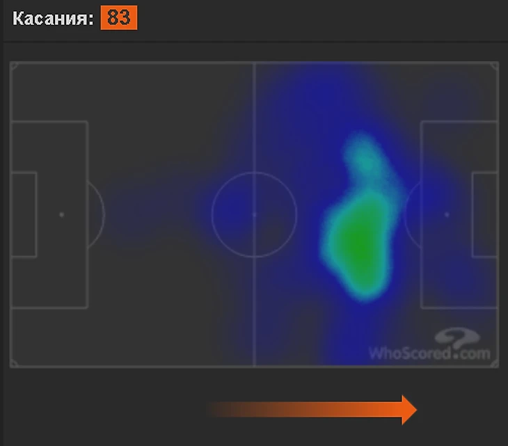 Посмотрите на тепловую карту Гризмана в матче с Бетисом, количество касаний. У Суареза показатели меньше, а усредненная позиция во время матча выше.