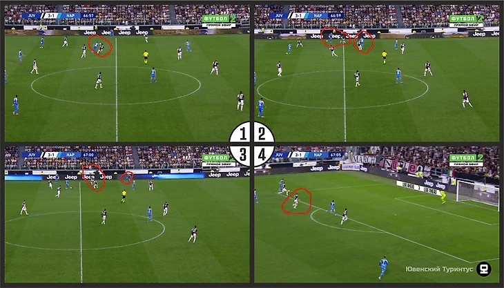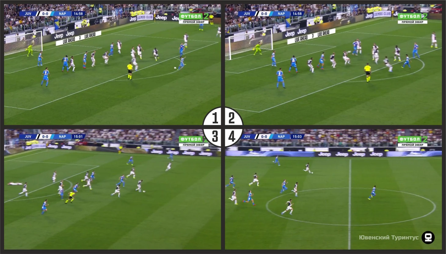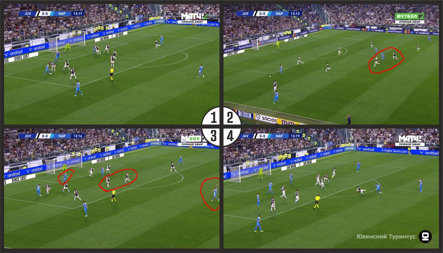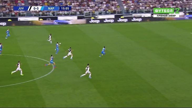 Но Наполи был аккуратен, практически без высокого прессинга и защитная линия Ювентуса не испытывала особых проблем с контролем мяча.