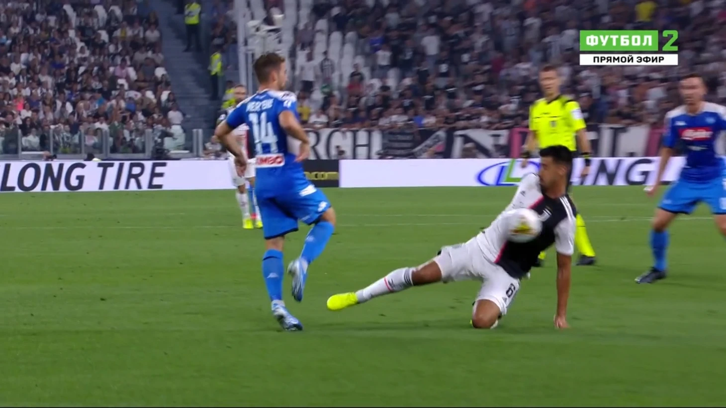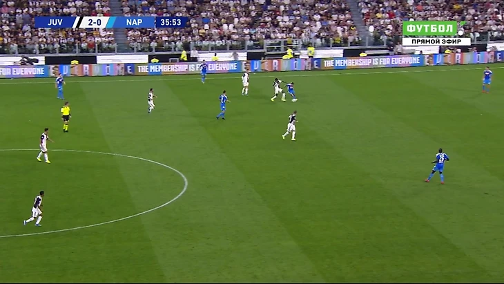 Тем не менее, что меня уже радовало в первые минусы, даже не смотря на то, что Наполи очень аккуратен, не летит вперёд и, тем самым, не создает свободные зоны, Ювентусу удавалось, потихонечку продвигать мяч вперёд и входить с ним в штрафную. Но там либо Кулибали выбивает мяч, либо не совсем точный последний пас происходит.