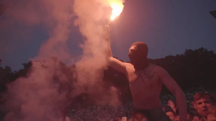 В апреле вышел клип на песню «Контрольный», который начинается с момента, в котором команда Коржа окончательно решила брать стадионы: «Назад дороги нет, друзья. Погнали». В какой-то момент в клипе появляются шарфы. Теперь под этот трек фанатские розы максимально выходят из под контроля. Вот как это выглядело в субботу на «ВТБ Арене».