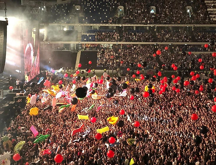 Стадионы, кричалки, фанаты в мерче и цветных спортивках из 90-х, пробивающие выезды на автобусах. Все это не футбол, а концерты Макса Коржа. В субботу он собрал 35 тысяч в Москве на «ВТБ Арене», неделей ранее – столько же в Минске на стадионе «Динамо», а в конце июня – 26 тысяч в Киеве на стадионе имени Валерия Лобановского.