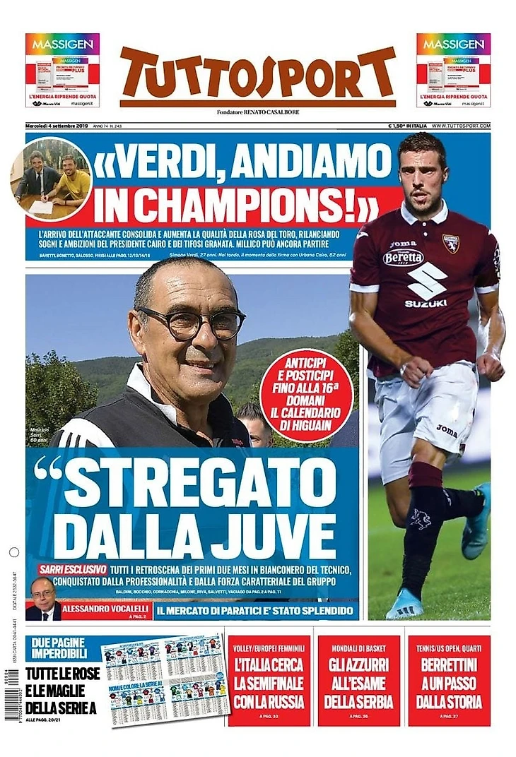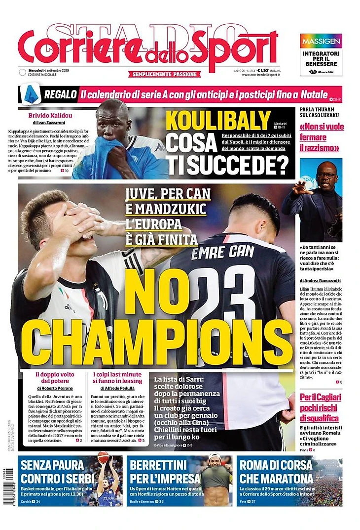 Хозяева ГалАктики. Заголовки Gazzetta, TuttoSport и Corriere за 4 сентября