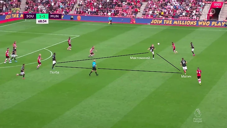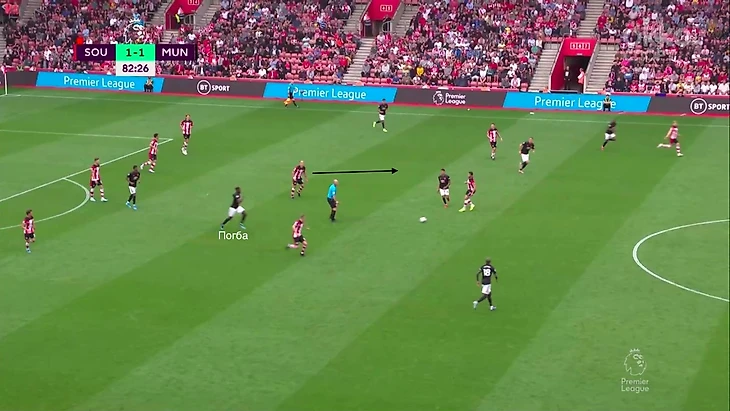 Первые 10 минут Юнайтед лишь раз смог осмысленно подойти к воротам. При этой «святые» прессинговали до вратаря, ошибались не только защитники, но и Погба который стягивался для помощи.