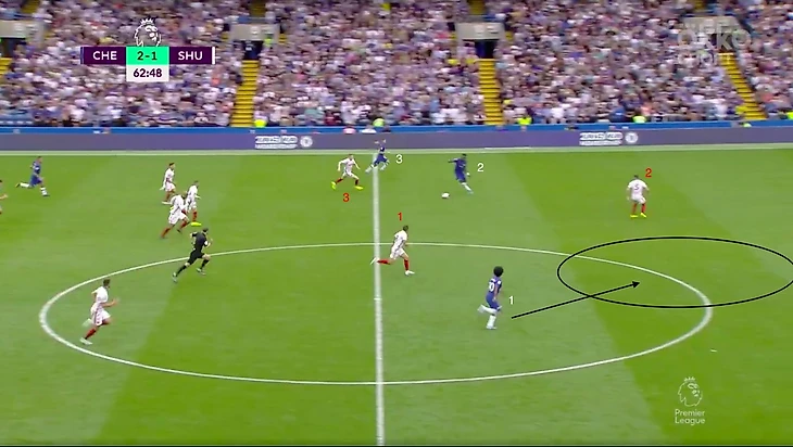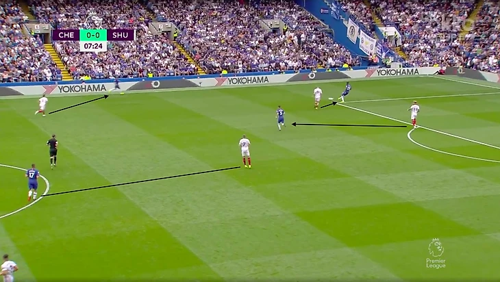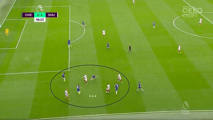 Структура матча. Первый тайм—Челси владеет мячом, но не территорией, при этом не создаёт несколько опасных моментов, но им не хватает слаженной структуры. После 60-той минуты Шеффилд чуть выровнял владение и стал больше контролировать мяч, игра стала более открытой. Лэмпард очень хорошо это прочувствовал и одной заменой очень сильно помог своей команде. Последние 6-7 минут матча, это навал от Шеффилда. Теперь обо всём по порядку.