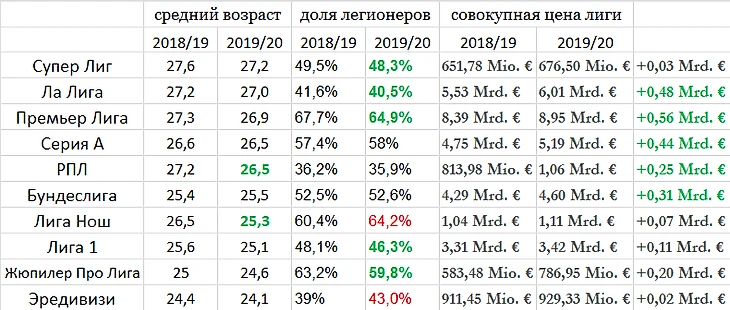РПЛ помолодела и подорожала — смотрим на топ-10 лиг
