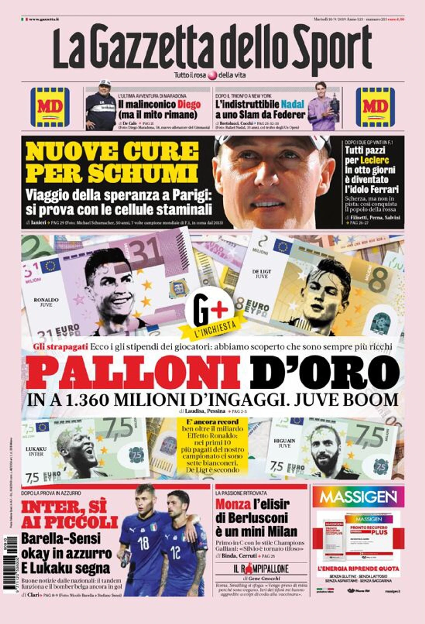 Золотые мячи. Заголовки Gazzetta, TuttoSport и Corriere за 10 сентября