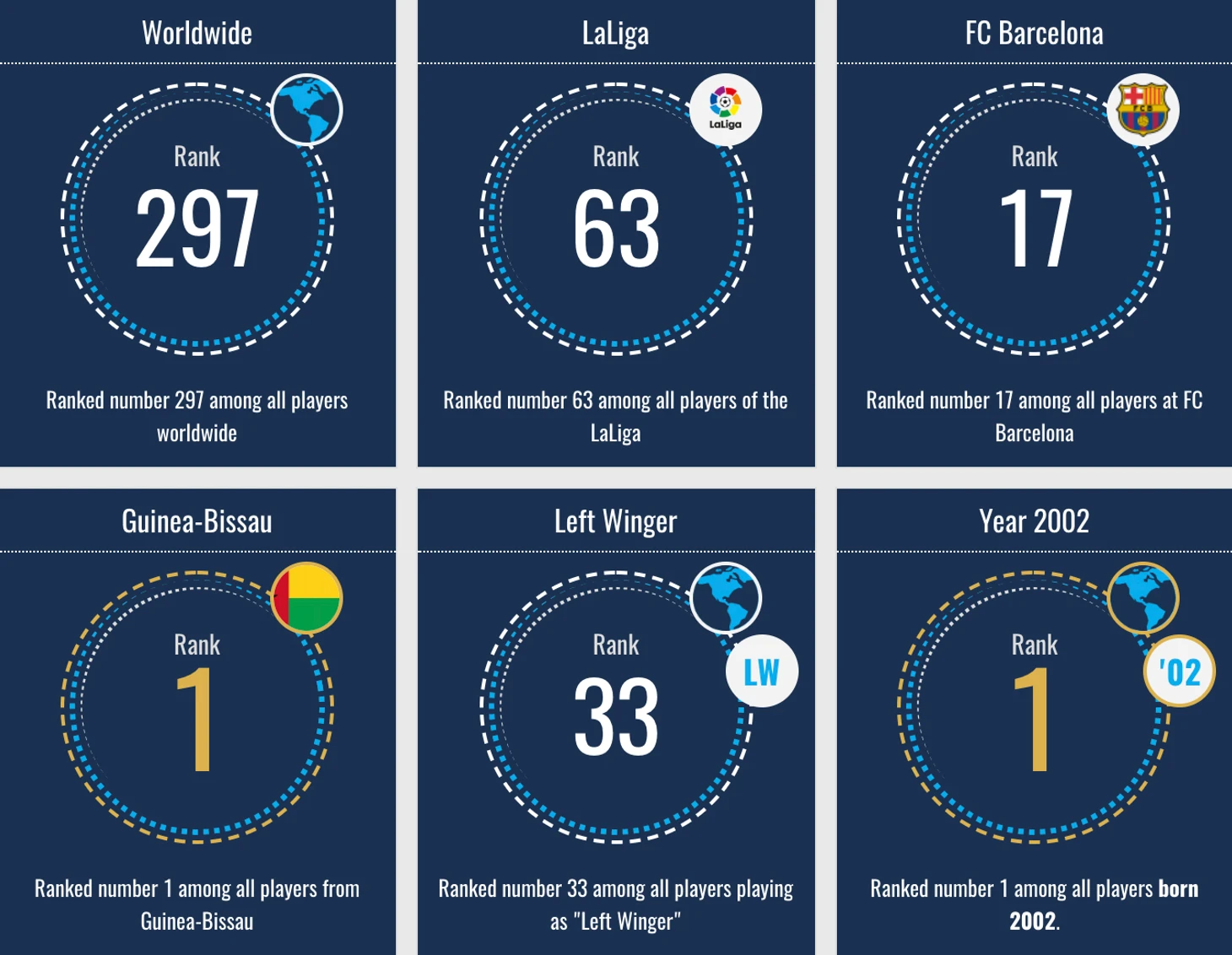 После недавнего обновления данных Transfermarkt, рыночная стоимость 16-летнего игрока "Барселоны" Ансу Фати выросла до 22,5 миллиона фунтов, что сделало его 17-м самым дорогим футболистом "Барсы", самым дорогим 16-летним игроком и самым дорогим игроком из Гвинеи-Биссау.