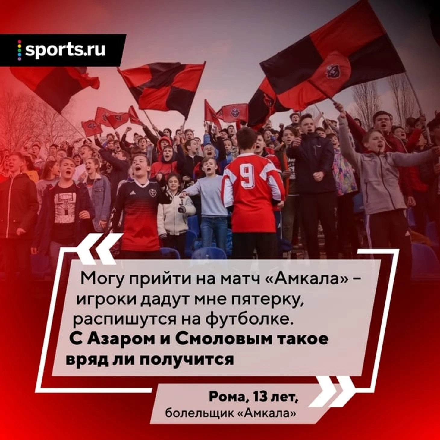«Герман, Нечай, Кефир и Ставр – для меня такие же кумиры, как Азар или Смолов, только они ближе ко мне, говорят на одном языке, – рассказал 13-летний болельщик «Амкала» Рома, который смотрит видео всех игроков «Амкала», был на двух матчах, после одного из которых заболел и не пошел в школу. – Могу прийти на их матч, они дадут мне пятерку, распишутся на футболке. С Азаром и Смоловым такое вряд ли получится».