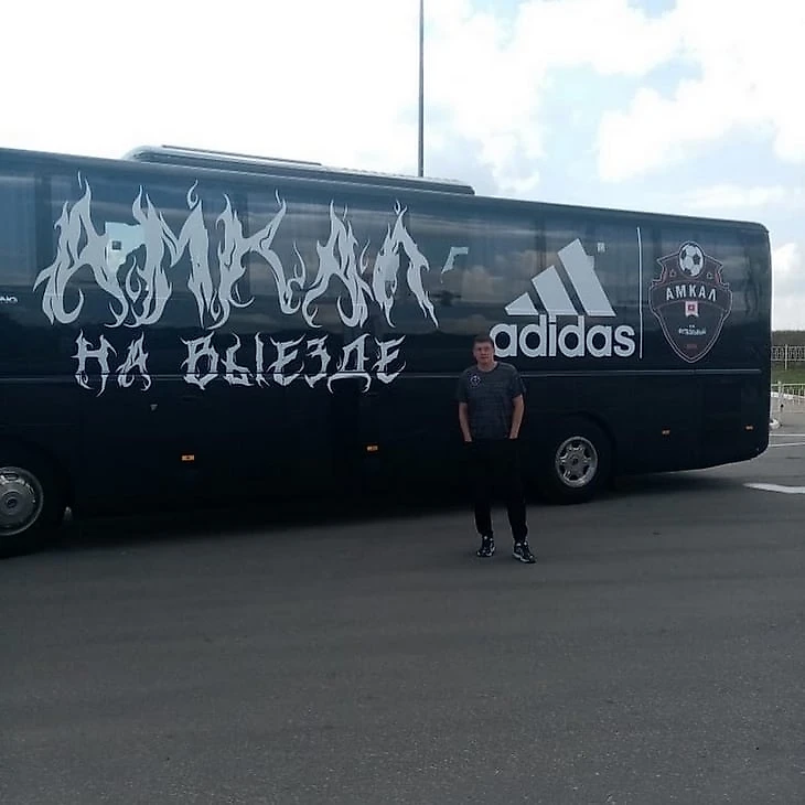 На автобусе «Амкала» постоянно меняются надписи: игроки обыгрывают мемы. На один из матчей команда ехала со словами: «Полуфутбольный клуб «Амкал».