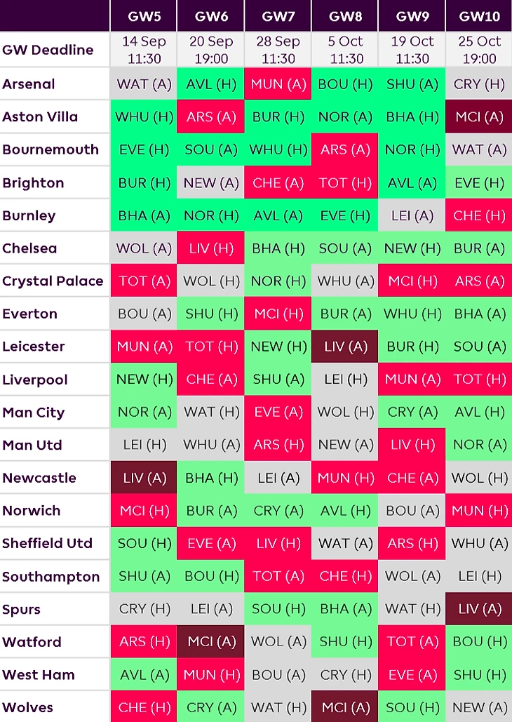 Помимо Ливерпуля и Ман. Сити, которым по большому счёту не так уж важен этот параметр, приятное расписание можно отметить у Арсенала с Тоттенхэмом, а также Бернли, Астон Виллу и, пожалуй, Борнмут.