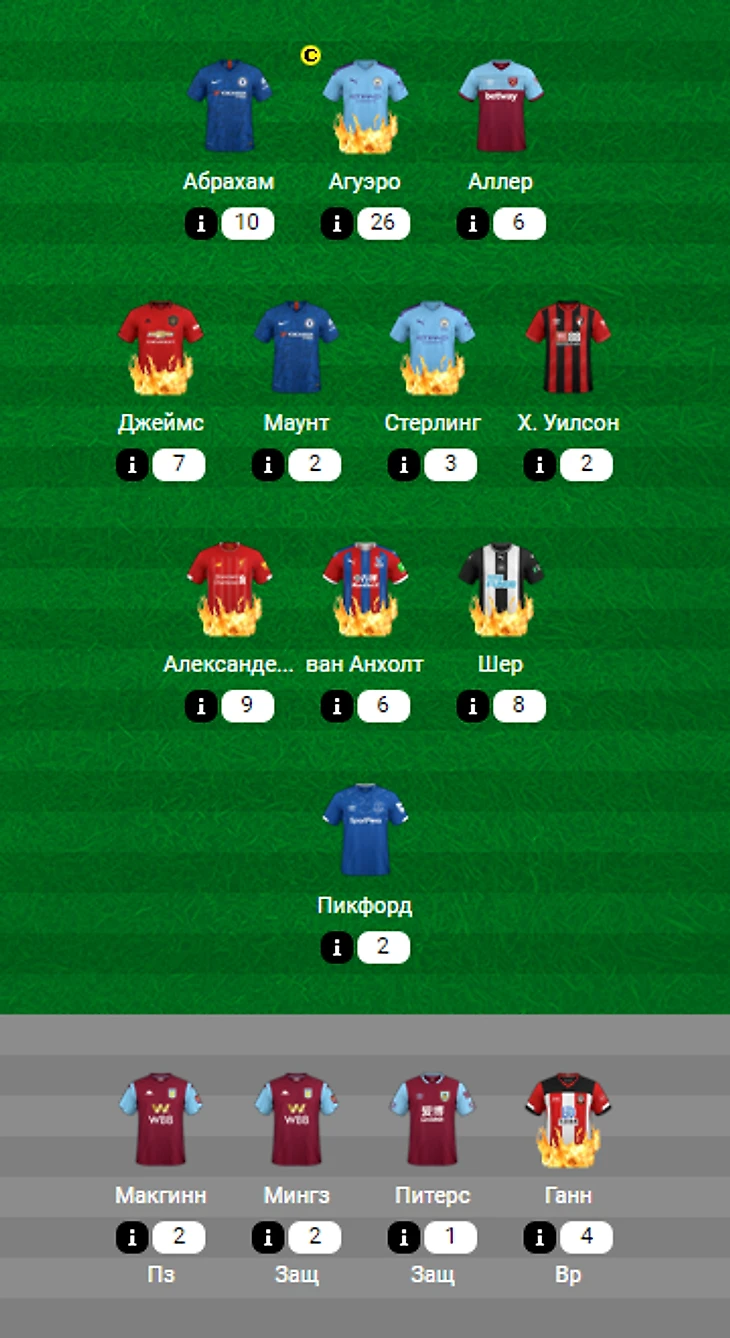 Нападение. Серхио Агуэро 9,0 забивает в каждом матче, и уже обогнал даже Пукки, и единственная причина по которой вы можете его не брать - уверенность, что он не выйдет на поле. Мохамед Салах 9,5 продемонстрировал исключительную нацеленность на гол в матче с Бернли, чем даже вывел из себя Мане, Мо - конечно "египетский король", но свои отношения с партнерами ему точно стоит пересмотреть, а так Ньюкасл и Челси неплохой повод иметь египтянина в составе. Пьер-Эмерик Обамеянг 9,0 демонстрирует весьма стабильные результаты, что вкупе с приятным календарём габонца делает его приоритетным выбором. Эшли Барнс 7,0 не сумел распечатать ворота Ливерпуля, но думается с обороной Брайтона, Норвича и Астон Виллы ему будет попроще.