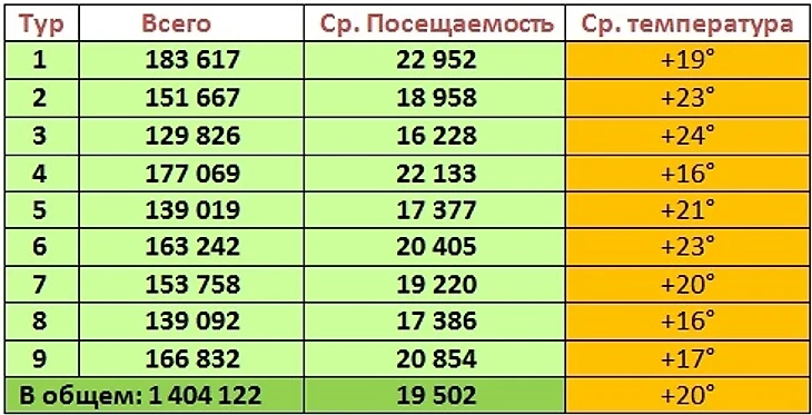 Изменение посещаемости в сравнении с прошлым сезоном: