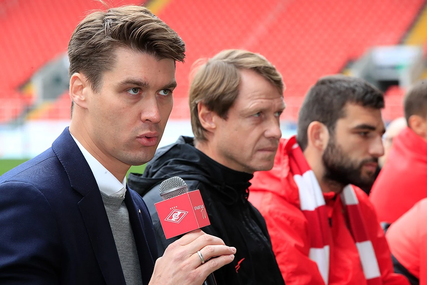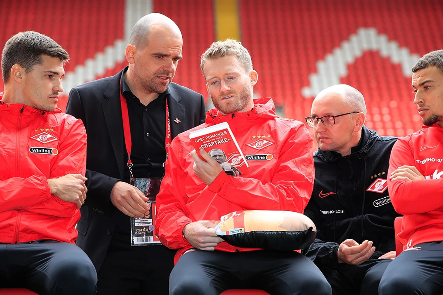 На вопросы ответили генеральный директор «Спартака» Томас Цорн, главный тренер Олег Кононов, капитан команды Георгий Джикия, вице-капитан Роман Зобнин, а также Зелимхан Бакаев, Александр Максименко, Андре Шюррле, Джордан Ларссон и Гус Тиль.