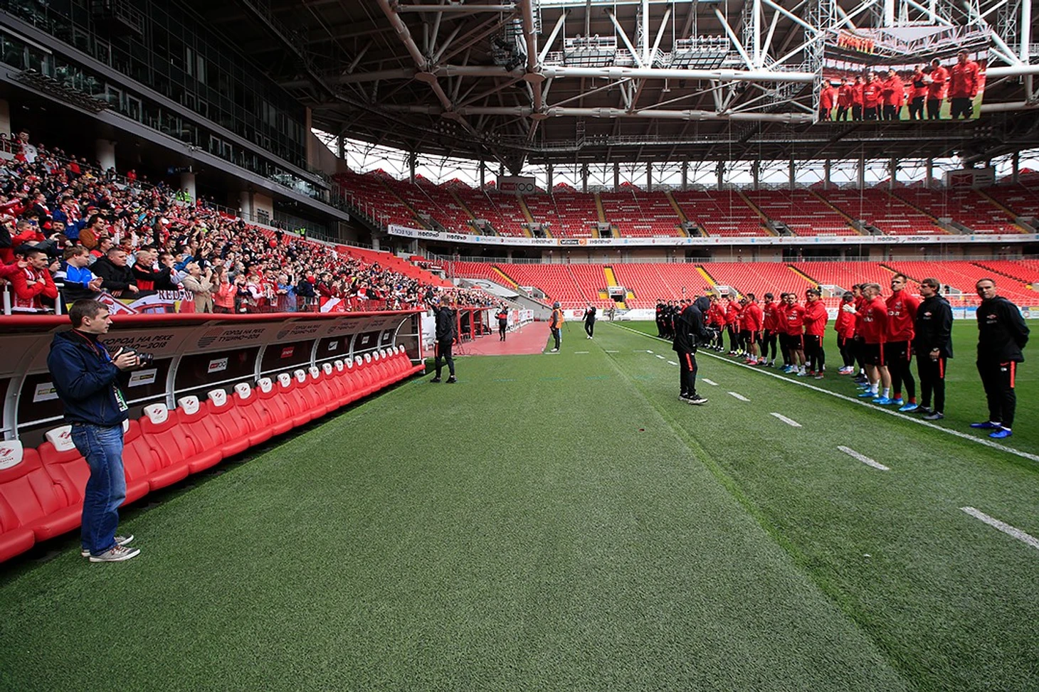 Перед началом занятия состоялось представление новичков красно-белых. Зрители приветствовали Эсекеля Понсе, Малкольма Баду, Резиуана Мирзова, Андре Шюррле, Джордана Ларссона, Гуса Тиля и Алекса Крала, которые присоединились к нашей команде этим летом, а также новых членов тренерского и медицинского штабов: тренера по реабилитации Владимира Чепзановича, тренера по физподготовке Александра Зайченко, главного врача Михаила Бутовского, доктора Глеба Чернова и физиотерапевта Павла Гузеева.