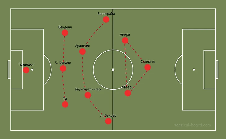 Особую роль играл Ларс Бендер. Он выступал на позиции правого защитника, что очень странно. Ларс всегда был опорником и всего за полгода под руководством Боса, он очень круто освоил эту позицию. Он всегда был выше опорников, но при этом не бегал до углового флажка, как делали бы игроки этой позиции, которые играют выше опорников.