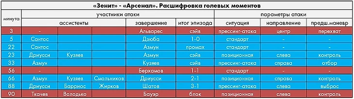 Карта потерь владения «Арсенала» в матче с «Зенитом»
