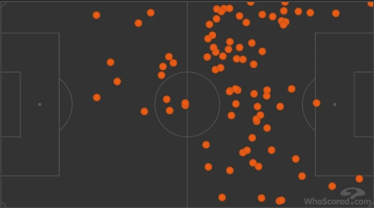 Бразилец здорово открывался для приема между линиями и почти не ошибался в передачах (92% точности), отбирал и подбирал мячи (4+7; больше только у Барриоса – 4+10), а также с видимой легкостью сбрасывал прессинг за счет дриблинга (3 из 4 удачных попыток, да и единственная неудачная не привела к потери владения – сопернику лишь удалось выбить мяч в аут).