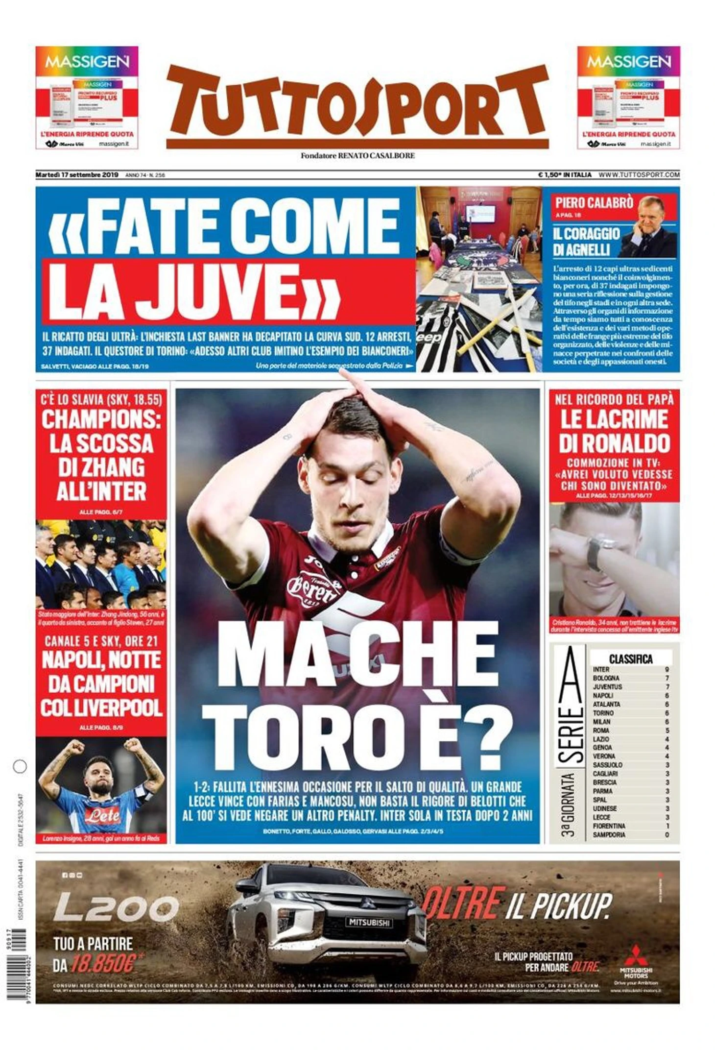 Игра всех звёзд. Заголовки Gazzetta, TuttoSport и Corriere за 17 сентября