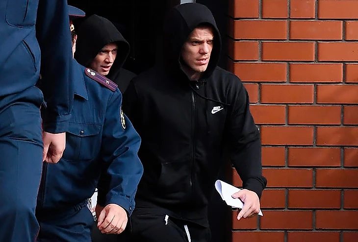 Александр Кокорин вышел первым. Улыбка, никакой бороды, черный спортивный костюм с капюшоном и кроссовки без шнурков. Кирилл повторил за братом, только ухмылялся, а не улыбался.