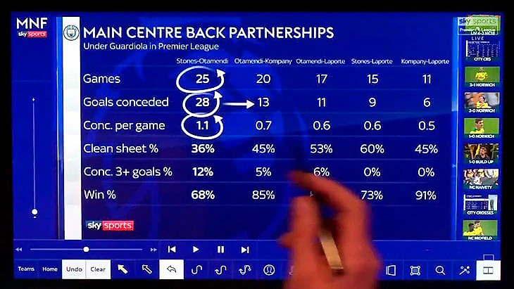 • Статистически это худшая пара защитников Сити при Гвардиоле – 1.1 пропущенных гола за игру, 36% сухих матчей, в 12% игр допущено больше 3 голов (каждый десятый матч, если подумать).