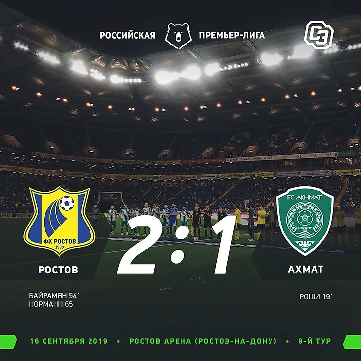 2:1 с таким счётом закончился матч, который выиграли ростовчане. В этом сезоне «Ростов» смотрится действительно неплохо, он составляет огромную конкуренцию за верхнюю позиции в таблице РПЛ. Однако первыми в игре отличились игроки «Ахмата» на 19-й минуте. Несмотря на то, что мяч был спорный, системы VAR не было, а это означало, что арбитр указал на 11-метровый. Со счётом 1:0 закончился первый тайм, но это означало, что во втором ростовчане выйдут более обозлёнными. На 54-й минуте Еременко забил с дальнего удара. Через 10 минут вновь забивает «Ростов» и уже выходит вперёд. Эта победа помогла клубу ворваться в тройку лидеров РПЛ.