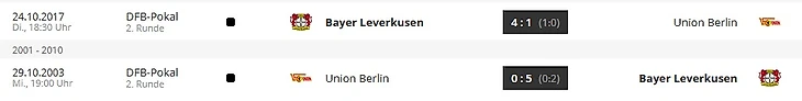 Соперники дважды встречались в Кубке Германии. Оба раза крупно выигрывал "Байер" (5:0 и 4:1)