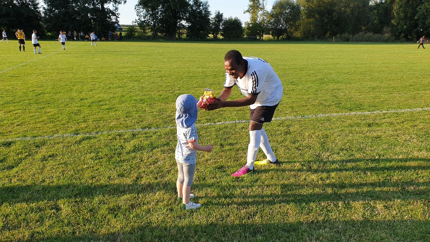 Первый свой стадион мальчик пробил в возрасте пяти недель – в январе 2017 товарищеский матч «SD Croatia» – «Friedenauer TSC». За следующие 2,5 года число арен перевалило за сотню. Первое время он больше спал, чем смотрел, но сейчас следит за игрой (хотя бы немного), изучает локацию, общается с болельщиками.