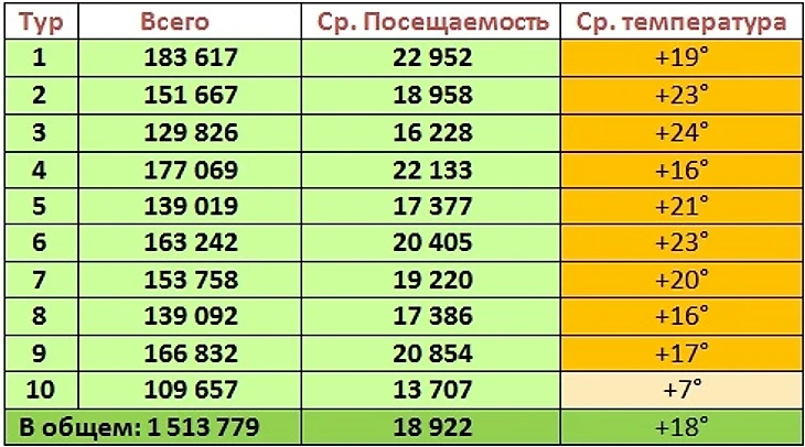 Изменение посещаемости в сравнении с прошлым сезоном: