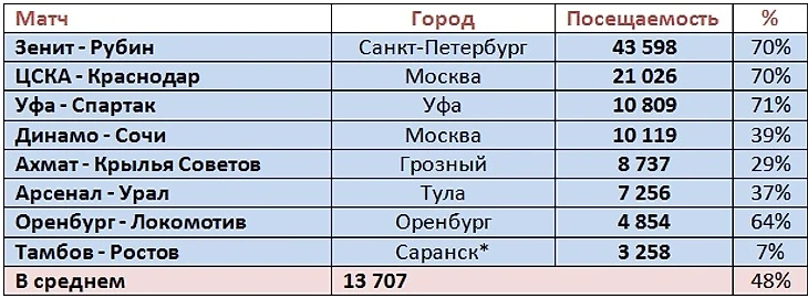 Очень удручают Уфа и Казань, Ахмат. Особенно УФА которая даже на Спартак - самый популярный клуб не может собрать стадион(да даже на Глазго не все билеты продали).