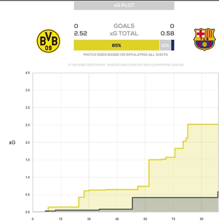 Новички переиграли действующего чемпиона как по общему количеству ударов, так и по количеству ударов в створ. А взглянув на карту xG сначала создается ощущение, что ответственные за ее составление люди перепутали хозяев и гостей местами. Просто не укладывается в голове, как клуб, кричащий в начале каждого сезона, о намерении победить в ЛЧ, не может за 180 минут наиграть даже на 1 гол против команд, стоимость игроков которых меньше годовой зарплаты Лео Месси. Магия Вальверде, не иначе.