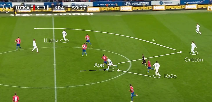 При этом смена флангов работала в оба направления: От Шапи к Вандерсону и наоборот. За счёт этих переключений и создавались моменты во втором тайме.