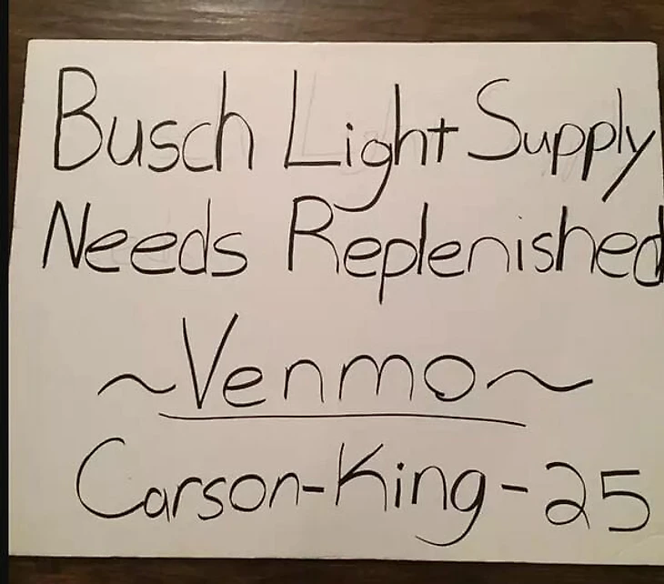 «Нужно пополнить запасы Busch Beer (марка пива – Sports.ru). Аккаунт в Venmo (приложение для денежных переводов – Sports.ru): Carson-King-25».