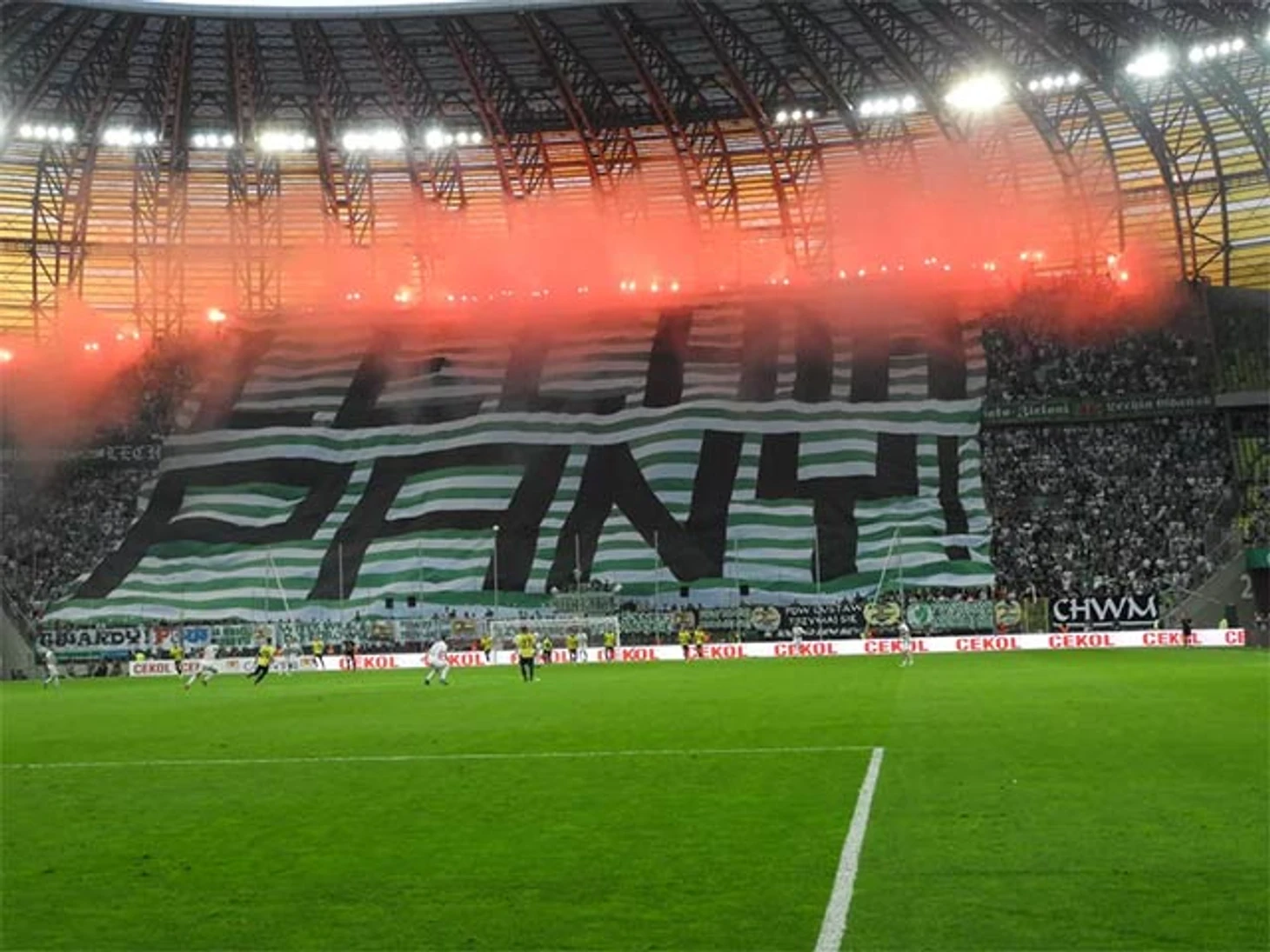Корео в честь самих себя от гданьских ультрас Green Animals. Хорошая посещаемость (26 тысяч) на этом классном красивом стадионе