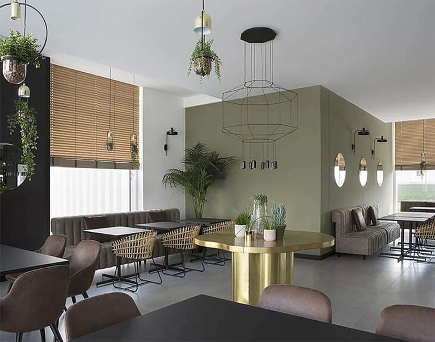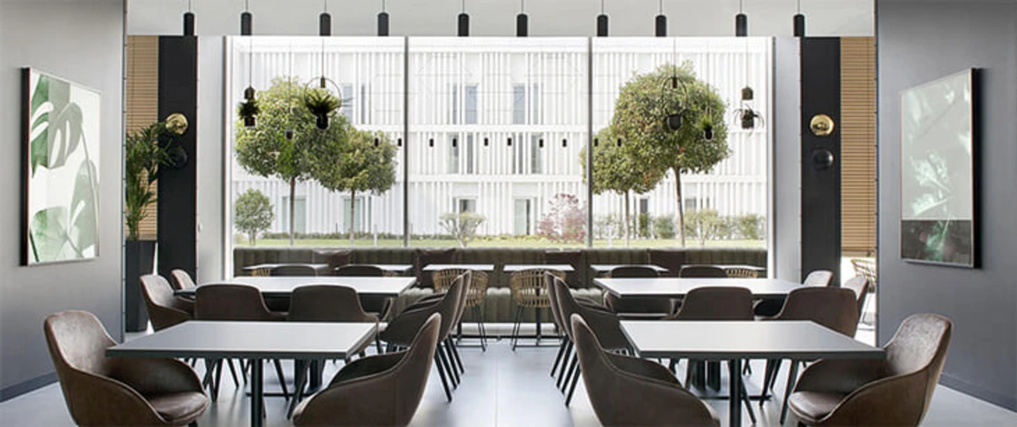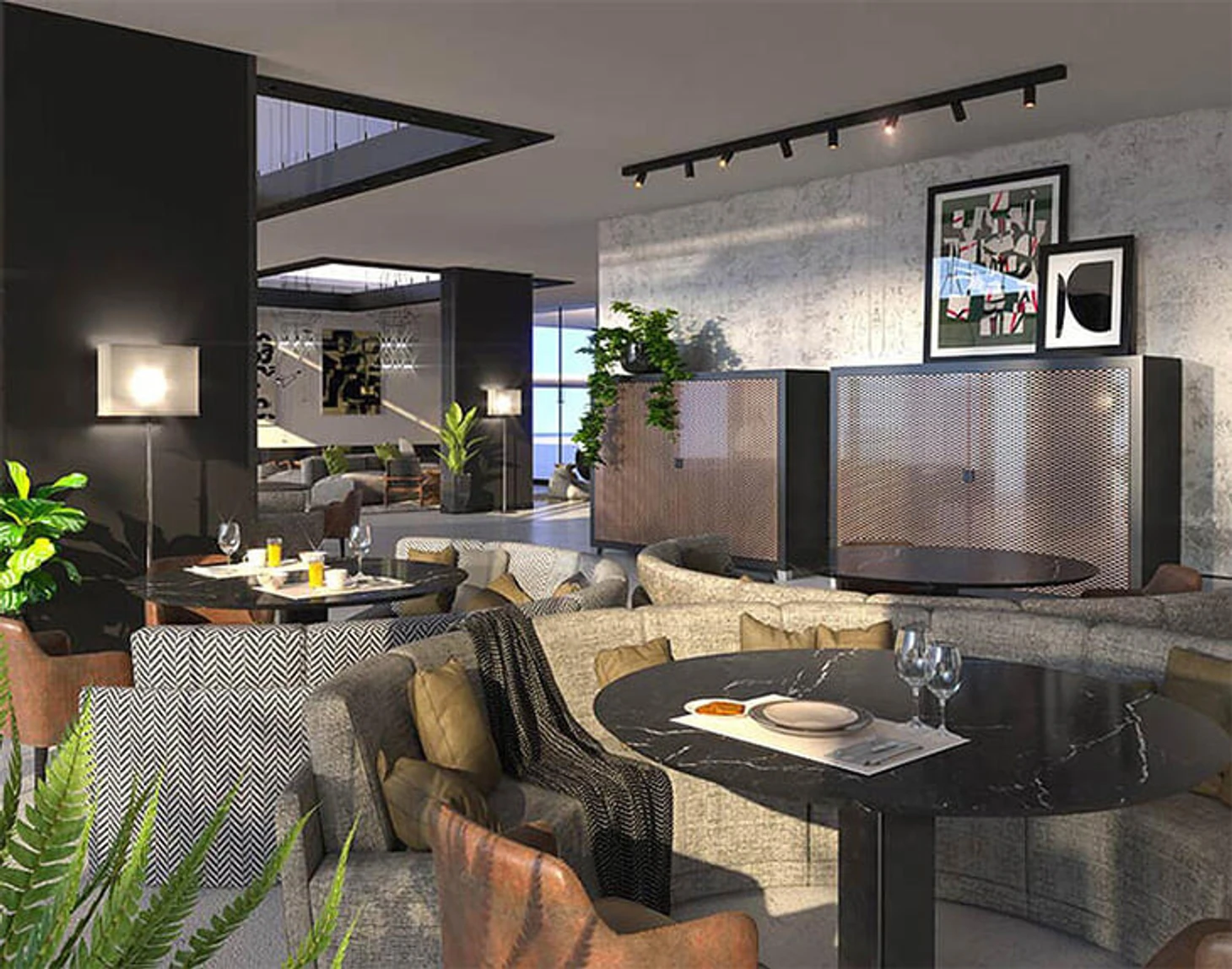 Для гостей работают лаунж-бар и ресторан Taola («стол» на пьемонтском диалекте, 80 посадочных мест). Шеф Taola – Давиде Скабин, один из самых известных поваров страны, владелец туринского ресторана Combal.Zero, отмеченного двумя звездами Мишлен и занимающего сороковое место в рейтинге лучших ресторанов мира San Pellegrino. Он продолжает работать в Combal.Zero, но подписал двухлетний контракт с J Hotel.
