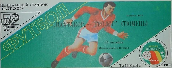 Ташкент. 6 августа 1988 года. «Пахтакор» – «Геолог» (Тюмень) – 2:1 (фото с обложки справочника-календаря «Футбол-89», составитель Э. Аванесов, издательство «Ёш гвардия» (Ташкент) 1989 год)