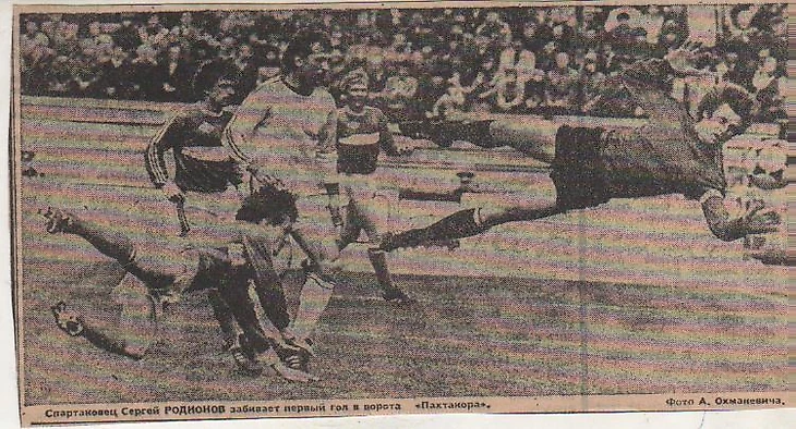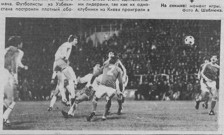 Ташкент. 26 марта 1983. «Пахтакор» – «Жальгирис» (Вилюнюс) – 0:0 (фото из газеты «Физкультурник Узбекистана» )