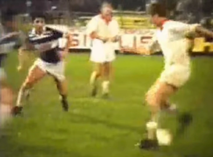 Ташкент. 4 августа 1989 года. «Пахтакор» – «Факел» (Воронеж) – 1:0 (скриншот). Хозяева в полосатом