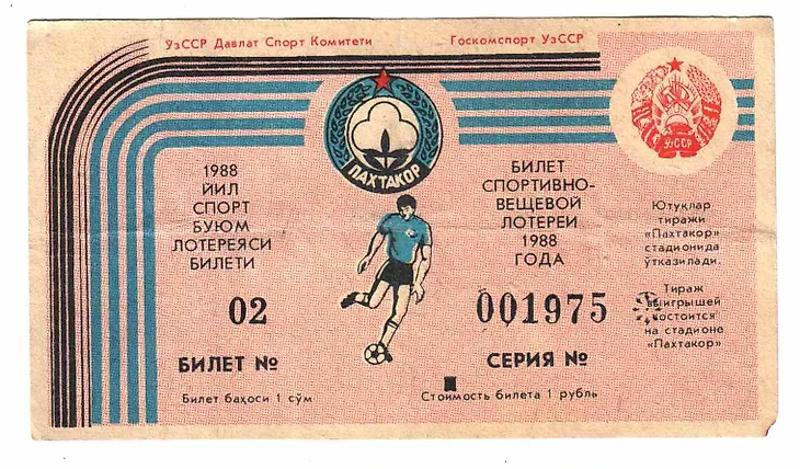 1988 год. Билет спортивно-вещевой лотереи Госкомспорта Узбекской ССР