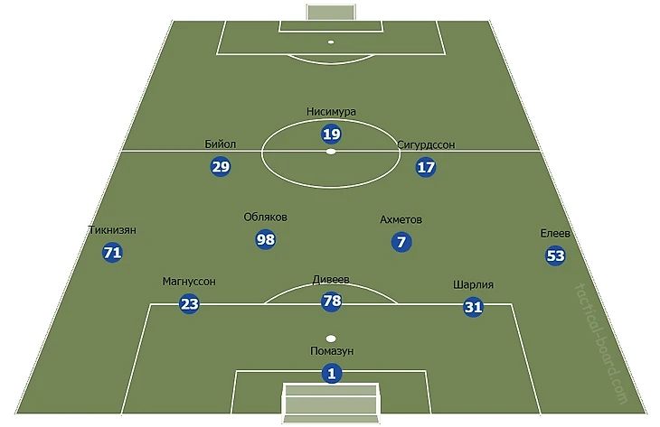 При атаках Обляков выдвигается ближе к паре Чалов-Нисимура.