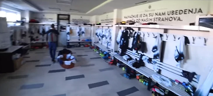 Тошич встречает Савина на базе «Партизана» и показывает ему раздевалку клуба.